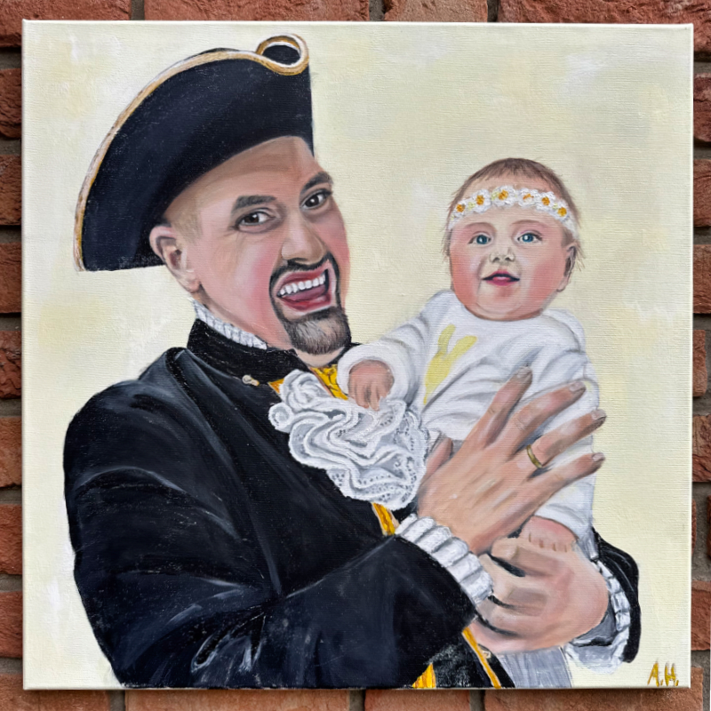 "Stolzer Papa mit seinem Mariechen", in Acryl auf Leinwand 60 x 60 x 2 cm